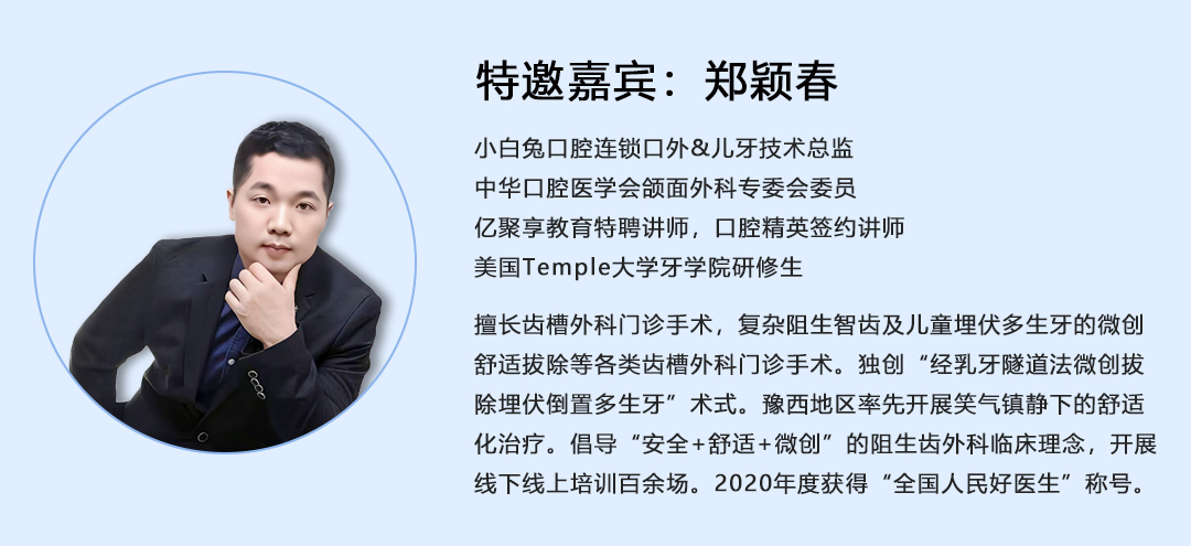 提到小白兔,大家都知道是以兒童為主體,那時候我們就提倡了這種無痛拔牙。包括演變那么多年,一直在講舒適化醫療,我覺得作為一個兒牙醫生,或者作為一個外科醫生。患者的體驗很重要,我們經常講到恐懼心理,這就要求一定把舒適化做好。