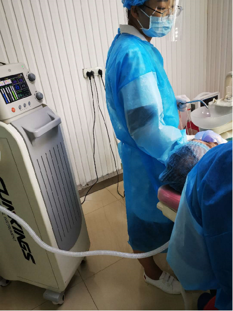 全程使用笑氣鎮靜,確實很有效地緩解了患者的緊張情緒,減少了注射麻藥過程中引起的疼痛。血壓控制在穩定狀態,配合度也高了,能很大程度提高臨床的治療效率。