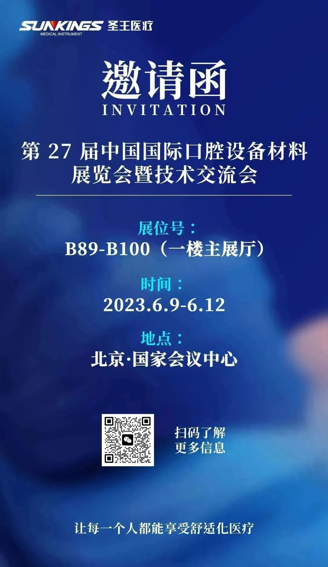 圣王醫療將于6月9日至12日,在北京·國家會議中心參展第27屆中國國際口腔設備材料展覽會暨技術交流會,展位號:B89-B100(一樓主展廳),在此誠摯地邀請全國各界的伙伴們,蒞臨現場。