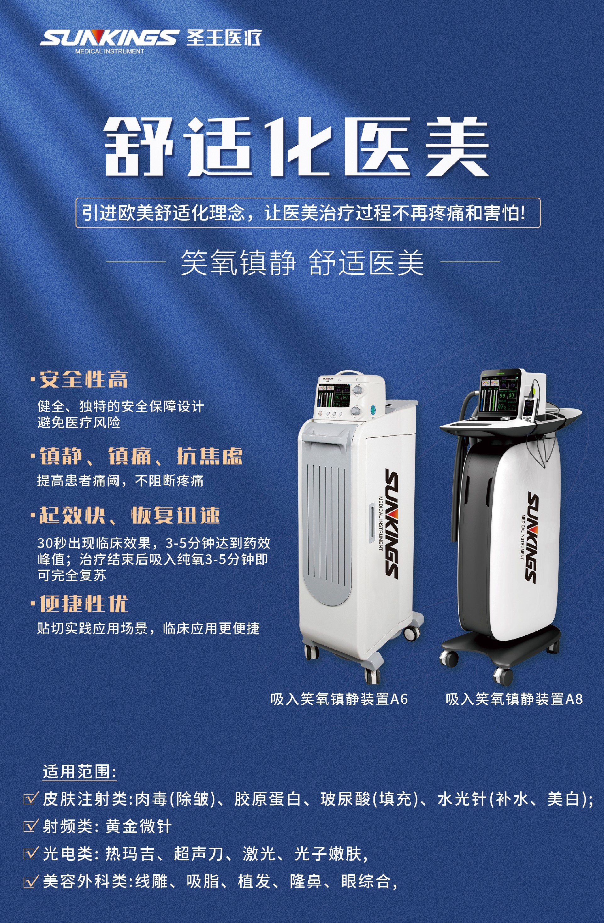 通過精準安全、有效便捷地控制笑氣與氧氣混合氣體的濃度比例與流量,使得笑氣作用于患者后產生最佳的鎮靜鎮痛狀態,從而實現舒適化醫療在臨床中應用的設備。
